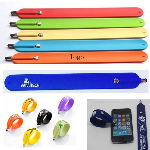 This silicone slap bracelet is made of silicone.With stylus pen design,attractive and practical item,large imprint area,it's great choice for promotion.Custom logo is welcom.