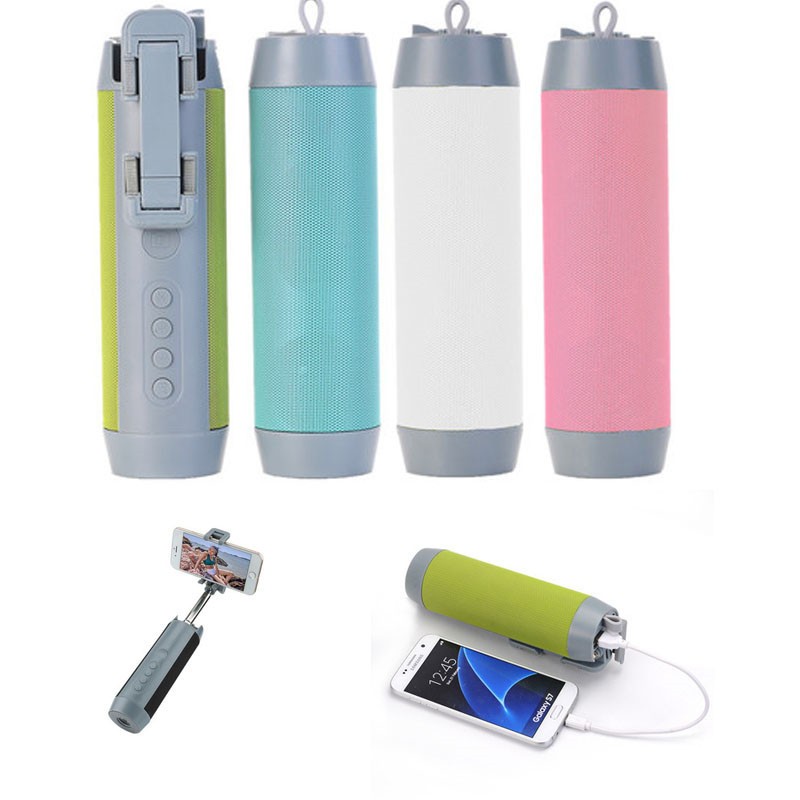This is 5 in 1, Support BT Speaker, Selfie Stick, Power Bank, mobile holder and torch .360 degrees rotating without blind corner. Sound box+selfiestick, let music more casual anytime, anywhere to easy stay beautiful moment. built-in 2000mah 18650 Li-battery, USB Charging output 1A.BT wireless selfie remote function. Support TF Card max 128GB reading. Flashlight function. Logo is available !
