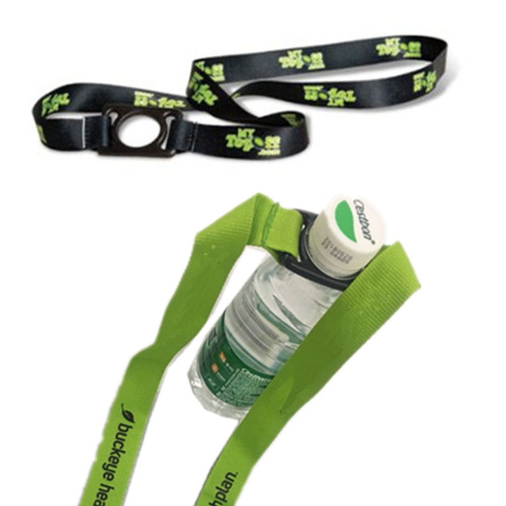 The Bottle Strap Lanyard is a 1-inch wide lanyard for carrying plastic bottles