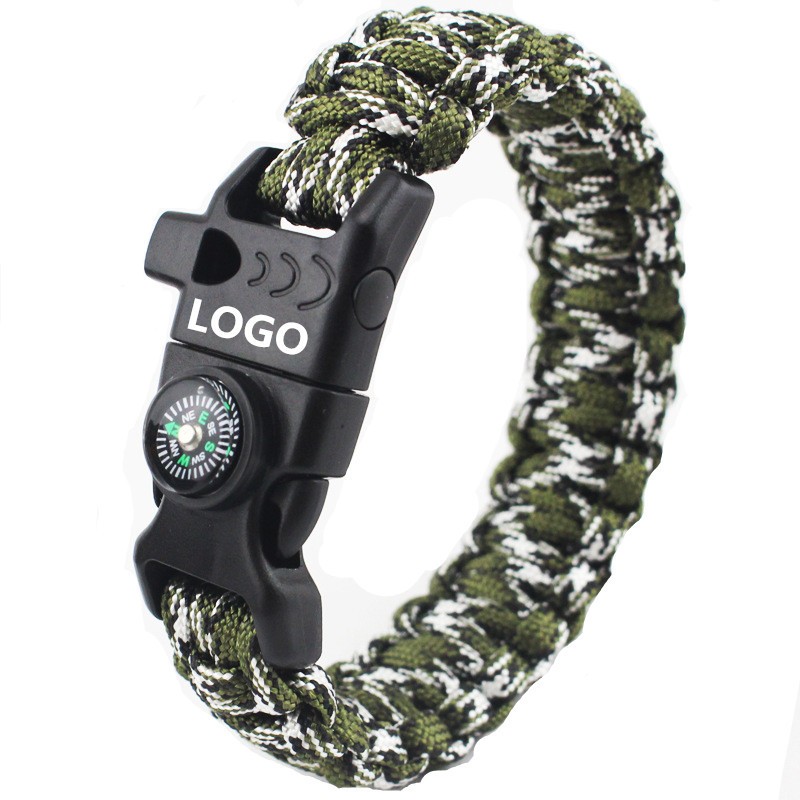 This 5 in one survival bracelet is made of Polyester. It consists of compass, whistle, flint fire starter and scraper. Simply slide to lock or take off. It is a must carry on survival gear when you go camping, hiking, fishing or hunting trips. The bracelet could be disassembled as rope for making traps, building tents, and in a lot other emergent situations; the scraper works as a fire starter, but could be used as a knife as well; the add-on compass feature provides easy safety for navigation while travelling; the built-in whistle is clear and loud to be heard from miles away.