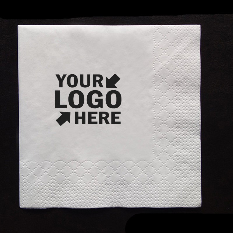 These sturdy 2-ply white promotional beverage napkins are great for weddings, Bar Mitzvahs, conferences, tradeshows, and other occasions. Showcase your company name or logo on these white, folded 2-ply beverage napkins! Made from recycled materials, these napkins measure 10" x 10" when fully opened .A variety of colors and sizes are also available.