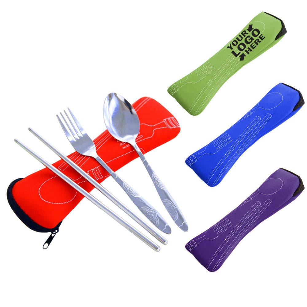 This unique giveaway comes with a spoon, a fork and a pair of chopsticks, all of which are stainless steel and dishwasher safe. Pouch is hand-wash only. These fork spoon set are very useful and beautiful, it is good for you to take it out and clean. This set can be customized with an imprint of your company name and logo for maximum brand exposure. Feel free to contact me about the logo!