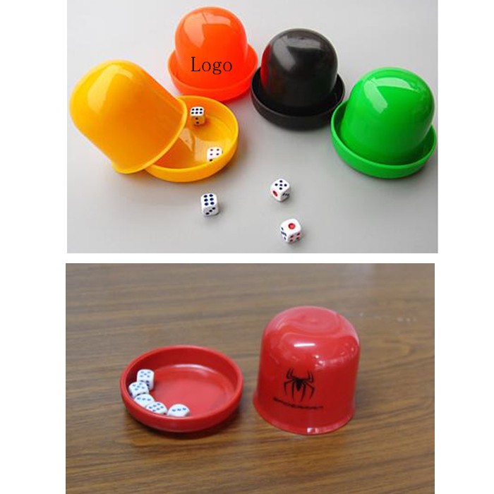 This dice set is made of plastic,has one dish,one cover,5 pieces dice.It's great choice for drinking game.Suitable for bar,restaurant,party etc.Large imprint area,low cost,it's economic for promotion.Custom logo is welcom.