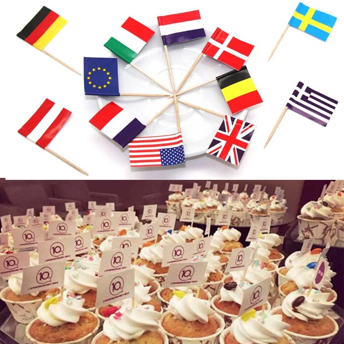 This toothpick flag is made of paper and wood,the paper flag is 0.98"*1.38",the pick stand is 2.55".It's a perfect decoration gift in promotion events.Any size, color and shape can be customized.Custom logo is welcome.