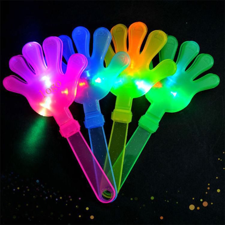Simply shake the hand clappers back and front, and you will make a plastic clapping sound that is fun. It is made of new environmental protection materials. Your customer will love to make some noise and show support of a brand they love. Perfect to use at concerts or other events to create atmosphere. Make some noise while adding light to your party with our LED Flashing Hand Clappers are 9.4" long and come in assorted colors. The logo can be customized.