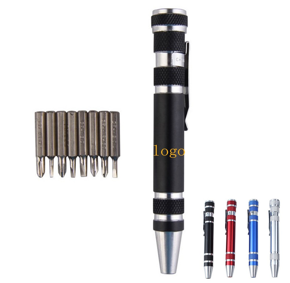 Recipients will be able to take your brand with them wherever they go with this pocket screw bit set! Measuring 5 1/8", the 7-in-1 aluminum pocket screwdriver is offered in multiple product colors and can be customized with your name or logo to extend your brand's reach. Design a marketing campaign that's sure to get you the attention you deserve!