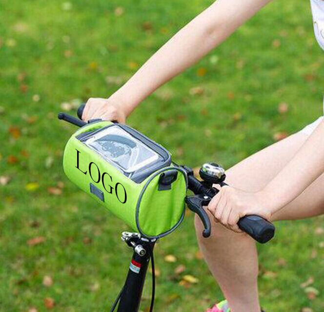 This cycling bag is made of Oxford cloth. It can be fixed on head of bicycle and it also can be discharged as a portable bag. Its size is 3" x 6" imprint size is 5" x 2".