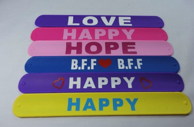 Slap-bracelet is made of silicone. It is fashion, simple and it has a good look. The size of this bracelet is 8.3" x 1". Customized imprinting is availiable. Imprint size is 6" x 0.8".