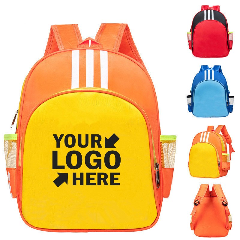 Preschool sizes backpacks is made of high-grade waterproof nylon. There are two side pockets for water bottle and umbrella. Good idea for toddlers headed to preschool or daycare. It can fit books, crayons, pencils, extra clothes, snacks and other items. Customize the backpack with your brand or logo to effectively advertise your business.