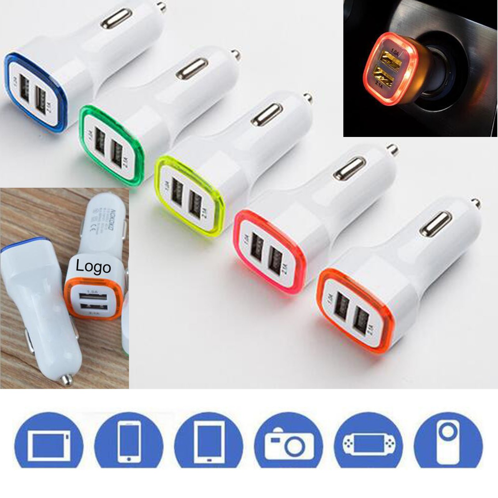 Leave home without the worry of your phone shutting off when you have this trustworthy dual USB car adaptor handy! Compatible with smartphones and any device that provides USB cable for charging.Overload protection and short circuit protection.Custom logo is welcom.