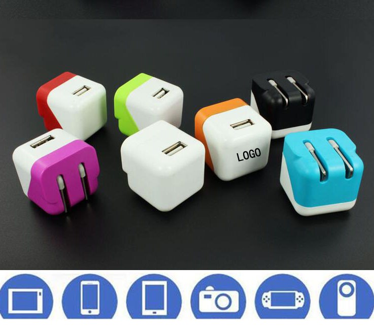 This 5.0V-1A folding USB wall charger is good choice for travel. Plug this charger into an electrical outlet to charge your electronics.Custom logo is welcom.
